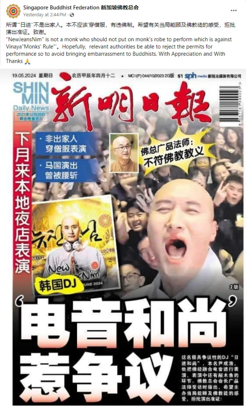It looks like “monk DJ” NewJeansNim (뉴진스님) isn’t welcome in Singapore. After his cancelled Kuala Lumpur performance, the controversial DJ will perform at a Singaporean club – but Singaporean Buddhists are not letting it happen.