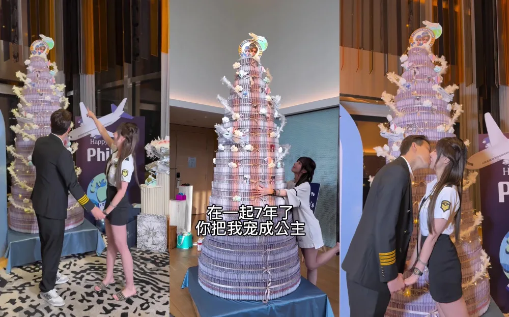 Reportedly, Candy Foong had rented a presidential suite in a hotel for the party, decorating it in the theme of “Reaching for the Sky”. Candy had also prepared a ‘money cake’ worth RM300,000 as a gift for her hubby along with a veritable feast of alcohol and canapés. The ‘money cake’ itself was a sight to behold, made of rolled up RM100 bills and stacked in multiple tiers, towering over them at 2.21m.