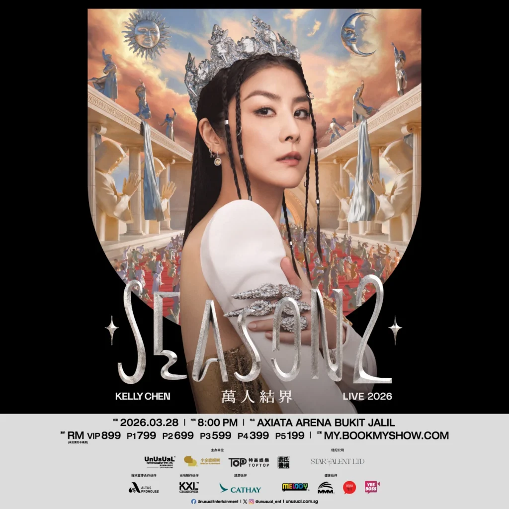 Recognised as one of Hong Kong’s most influential pop divas, Kelly Chen will celebrate a remarkable career spanning over three decades with another concert in Malaysia. The “Season 2 2026” concert will take place on 28th March 2026 (Saturday) at Axiata Arena. Tickets range from RM199 to RM899, and will be available from 9th January 2026 (Friday) onwards.