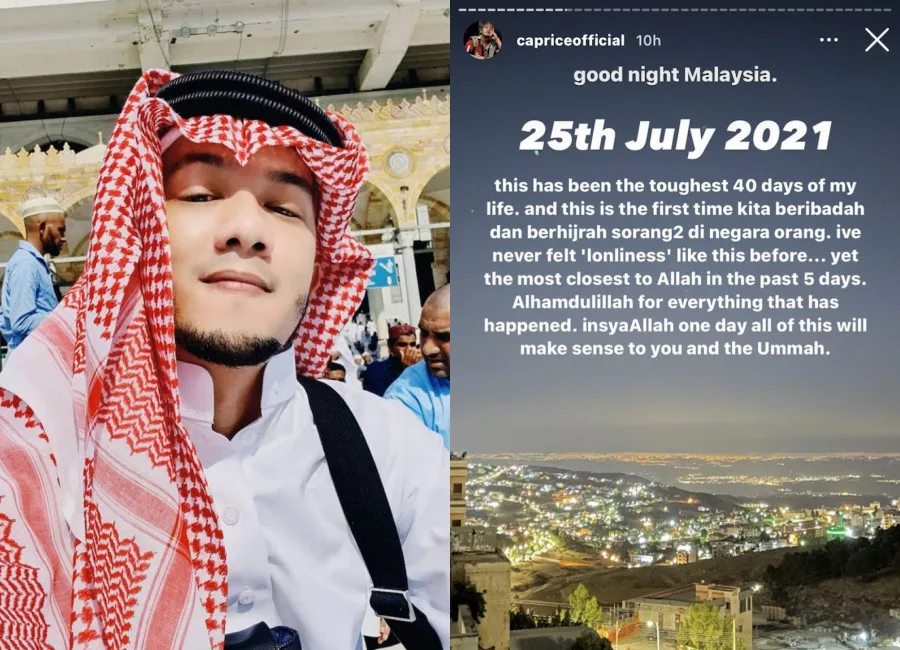“Good night Malaysia. 25th July 2021 – This has been the toughest 40 days of my life. And this is the first time I travelled and worshiped alone in a foreign country. I’ve never felt ‘loneliness’ like this before, yet the closest to Allah in the past 5 days,” the Negeri Sembilan-born rapper expressed.
