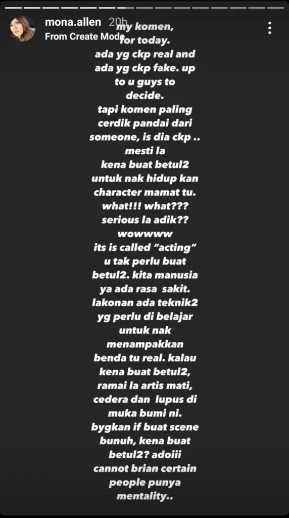 He added that there was a similar case before between cosmetic millionaire Dato Seri Vida (DSV) and singer Iqbal Zulkefli and that it got everyone talking about it. Meanwhile, Mona Allen has also shared her side of the story regarding the incident in her Instastory post as seen below: