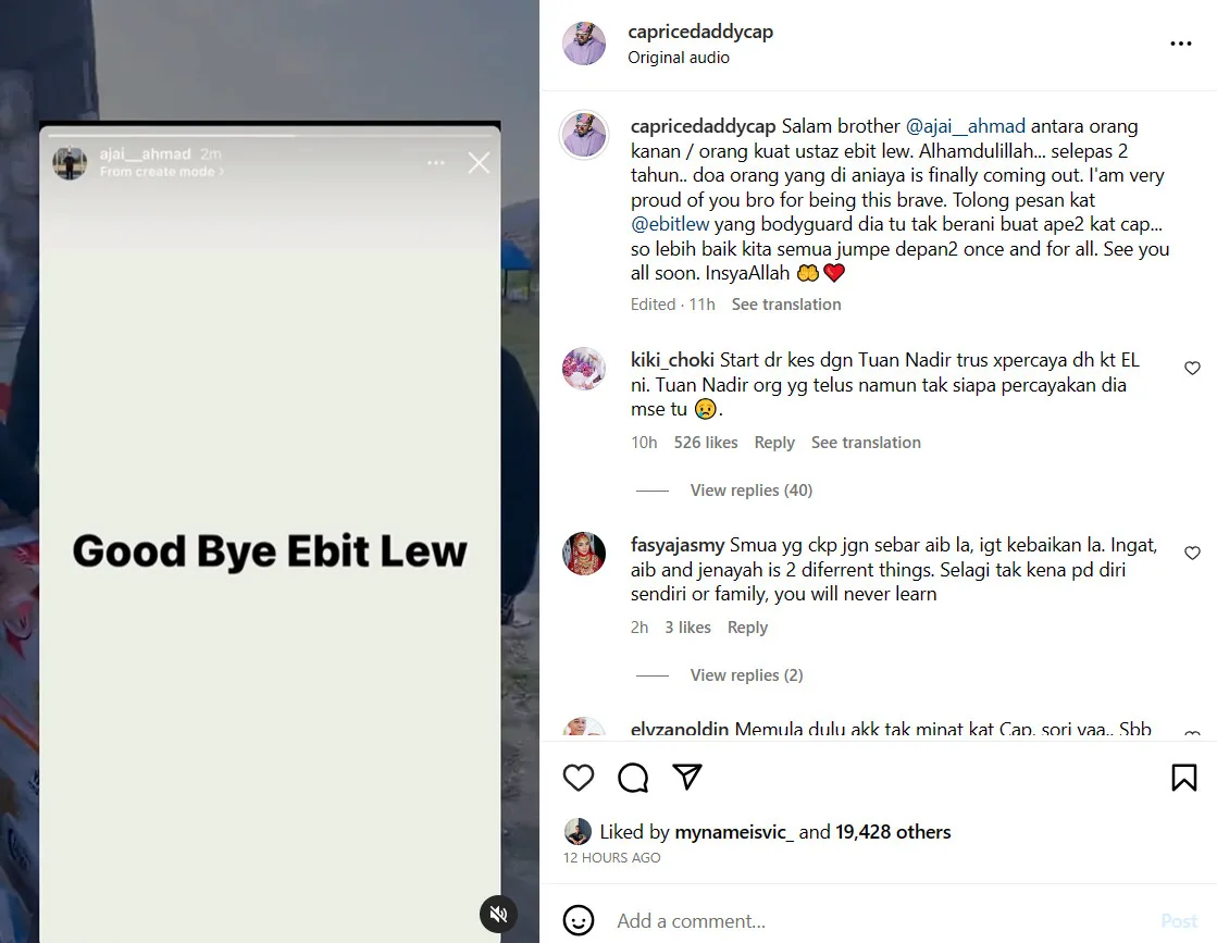 Last night, Caprice uploaded a few screenshots taken from Ebit’s “right-hand man”, Ajai Ahmad’s Instagram Stories. As seen in the post, it appears that he had decided to cut all ties with him.