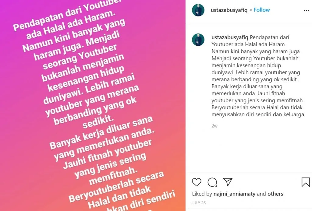Muslim preacher Ustaz Abu Syafiq Al-Asy’ary – who had a beef with Datuk Aliff Syukri in the past – made headlines this week after he claimed that income generated through YouTube is haram (illegal), sparking heated debates among social media users.