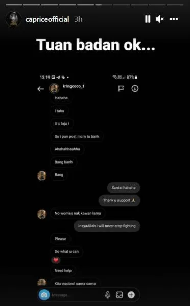Caprice later shared a screenshot of the conversation he had with King Coco on his Instagram Story. As seen in the post, it’s safe to say that the latter seemed unbothered by the recent controversy. “Please, do whatever you can. Let’s catch up with each other if you need any help from me,” the 23-year-old beauty replied.