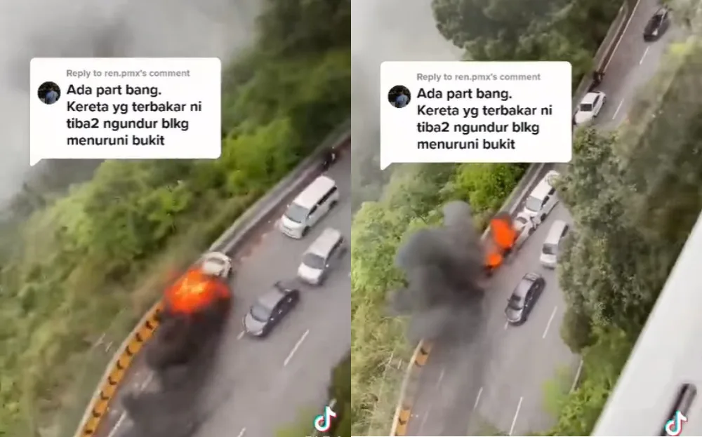 The incident had reportedly taken place about 1.44pm on 9th May. TikTok user @ren.pmx happened to be passing by in a cable car when they saw a South Korean Hyundai sedan which was on fire, start rolling backwards down the road. Other vehicles and people could be seen trying to get out of its way. However, its worrisome journey came to an abrupt end when its rear collided with a Toyota Vellfire SUV.