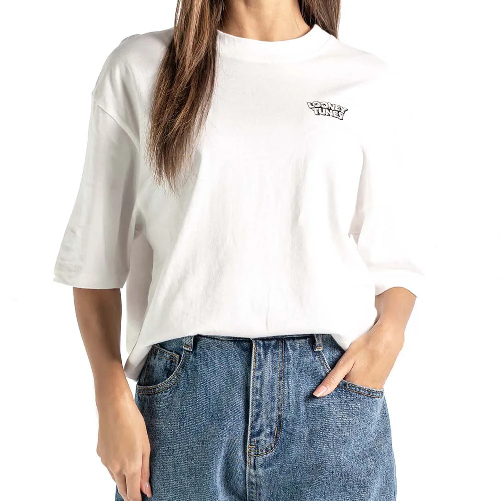 The colourful Bugs Bunny print on the back of the T-shirt will surely bring extra zest on a sunny weekend! Regardless if it’s a vintage denim or a ripped jeans, just tuck them in and you’re all set! Oh, don’t forget to also pair it with your cool Tweety or Daffy cross body wristlet if you want to feel a little extra (wink).
