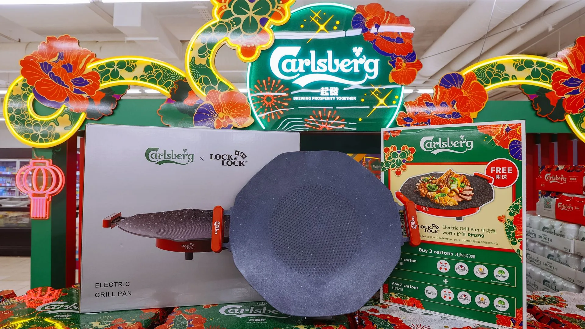 In Sabah and Sarawak’s super- and hypermarkets and e-commerce sites, shoppers can get a Lock&Lock Electric Grill Pan when they purchase a total of three cartons: two cartons of Carlsberg Smooth Draught, and one carton of either 1664, Connor’s, Sapporo, or Somersby cider.