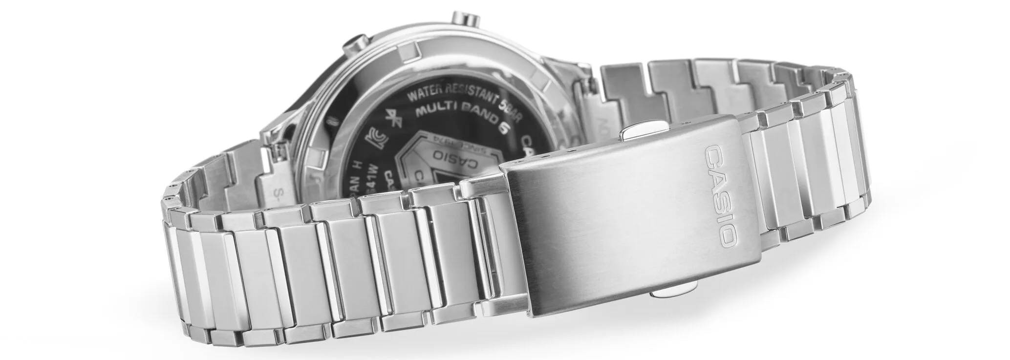 The new watch also delivers practicality with the highly readable super-twisted nematic (STN) LCD and Tough Solar charging system. In addition to receiving time calibration signals transmitted from six stations around the world, the watch is equipped with Mobile Link functionality for pairing with a smartphone via Bluetooth® to ensure precision timekeeping.