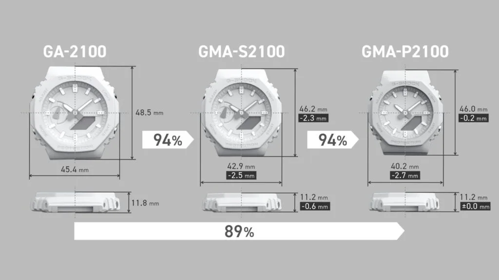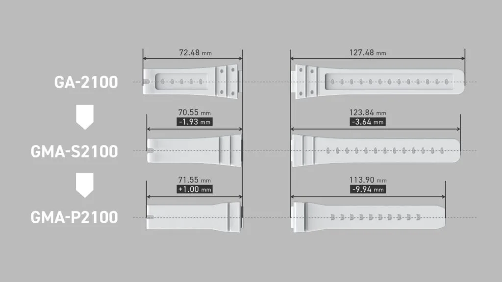 The length of the band has also been adjusted to comfortably fit even slimmer wrists. The buckle and side button are made of stainless steel to add sophisticated textural appeal, enhancing the watch’s simple and minimalist look.