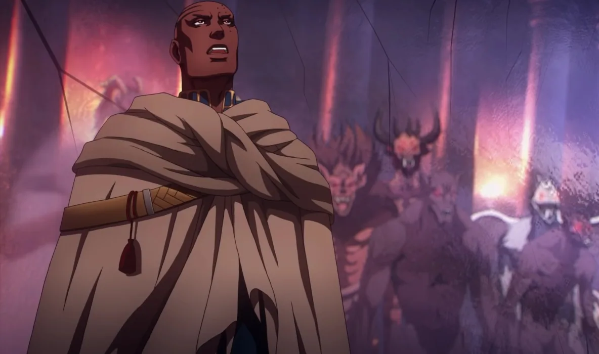 This voice work in this final season was nothing short of sensational. Richard Armitage as the incorrigble Trevor and Alejandra Reynoso as Sypha continue to be our favourite monster-hunting couple in all of anime. Over the seasons, you can sense the chemistry between our dynamic duo grow. James Callis as the perpetually stoic Alucard is as solid as ever. Again, the real star of this season is Isaac, voiced by Adetokumboh M’Cormack. Watching his character grow from vengeful servant to enlightened philosopher has been an utter joy for us.