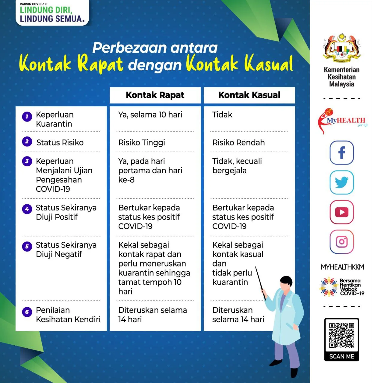 - Your MySejahtera status will stay as a Casual Contact for 10 days.