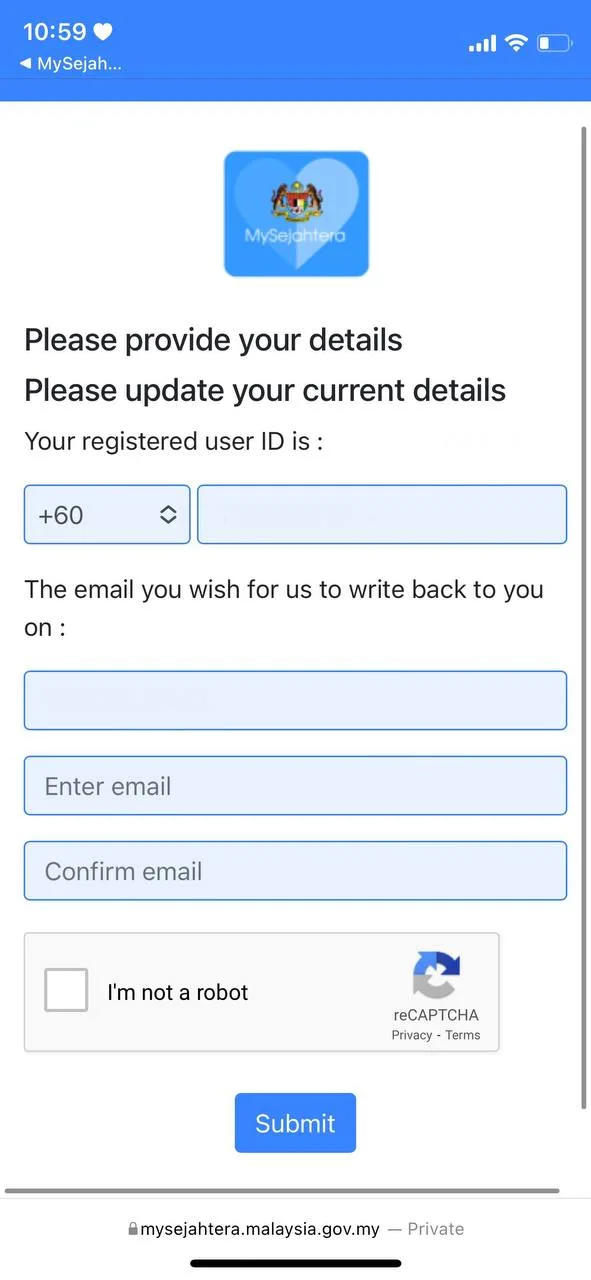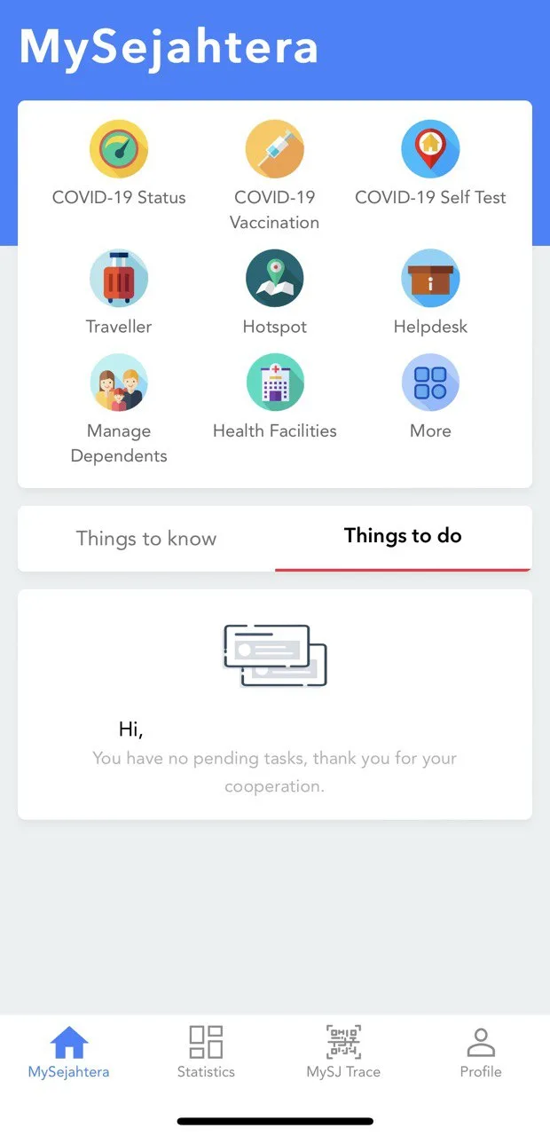If you’re experiencing any technical issues, you can call 1-800-88-8828 or email directly to helpdesk@mysejahtera.org. Hope this helps and we hope everyone stays safe!