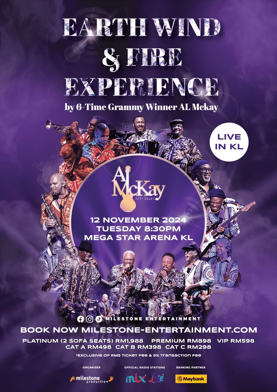 The only stop in Southeast Asia, a FULL LIVE concert at Mega Star Arena Kuala Lumpur on 12th November 2024, featuring the Al McKay Allstars, the only group capable of rendering this music with the original feel of Earth Wind & Fire. While Al McKay won’t be personally performing here, the 13-piece Big Band line-up will perform hit after hit of the supergroup’s material in the original keys with the original feel.
