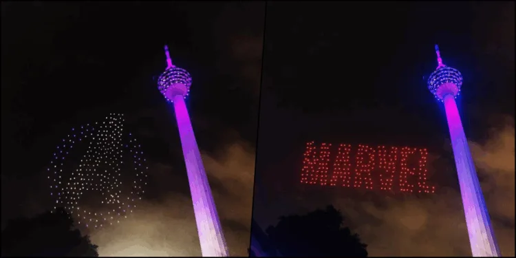 300 drones took flight and lit up the Kuala Lumpur night sky with a beautiful display of light show featuring the symbols from “Avengers” characters such as Iron Man, Thor, Captain America, Hulk and more.