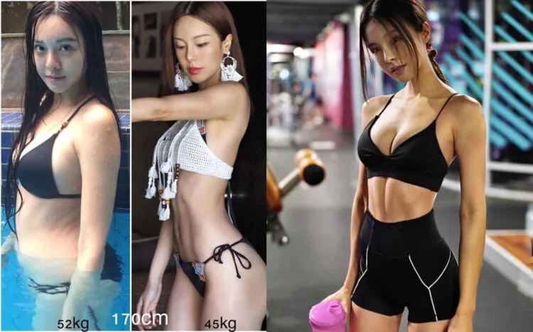 The collage shows an old picture when she weighed 52kg and a sexy picture of her current weight, which is 45kg. The 7kg difference speaks volumes – while the younger Cathryn had a fuller belly back then, the woman today appears much more confident in her skin.