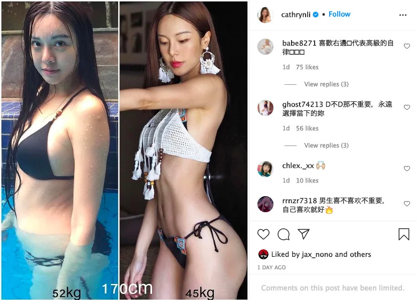 What is an ideal cup size for women – particularly Asian women? Yesterday (Tuesday, 5th October), Cathryn Li (李元玲) posted a side-by-side comparison of a throwback photo and a recent snapshot.