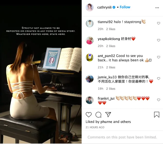 After approximately a month-long hiatus from social media, it looks like Cathryn Li (李元玲) is finally ready to face the public – or at least the music.