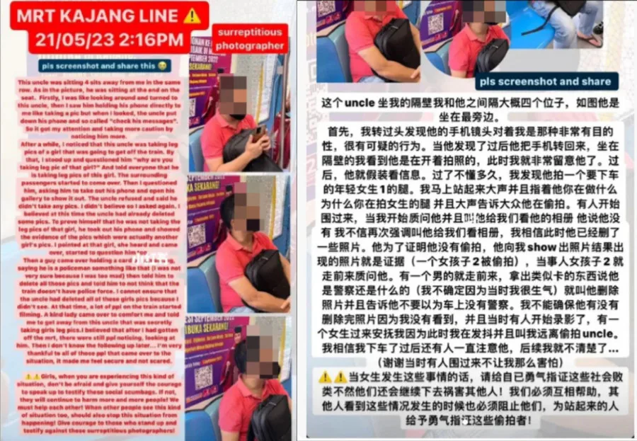 The lady had initially shared her experience to her Instagram Story, but it was quickly spread around. Apparently, she had been riding the Kajang Line MRT on 21st May around 2pm when she realised something was wrong. An uncle sitting four seats away had been surreptitiously directing his phone at her, as if taking her photo. However, when noticed, he allegedly started “checking his messages.” That only prompted her to be more wary.