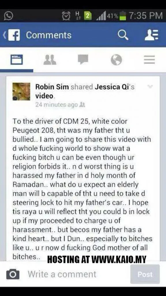 Not only has the video garnered thousands of negative response, netizens have also switched on their investigative journalism instincts to find out who this owner of the white Peugeot with the number plate CDM 25 is. Of course, with the power of social media, it didn’t take netizens long to narrow it all down to a Facebook page as well as an Instagram account.