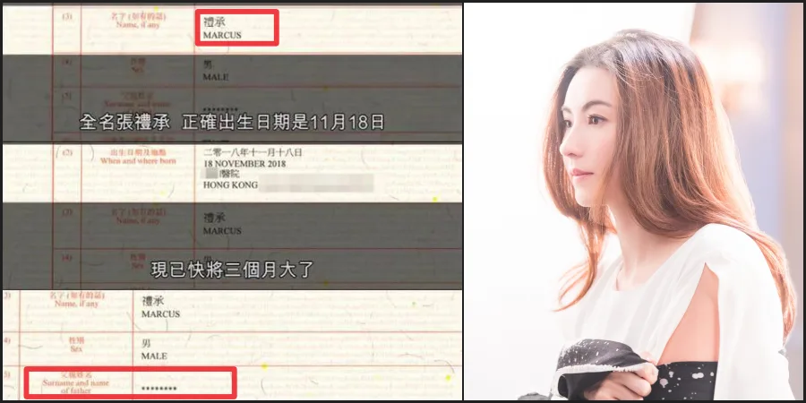 According to the paper, Cheung’s son was born on 11th November 2018 and his English name is Marcus while his Chinese name is Cheung Lai Seng (张礼承).