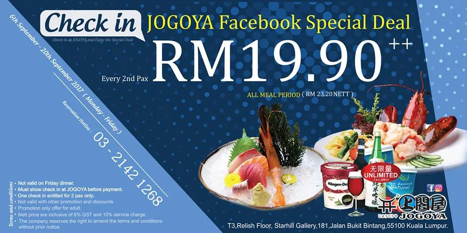 Come and have a delightful buffet spread at Jogoya Buffet Restaurant, Starhill Gallery. Known for their different types of cuisine such as Japanese, Western, Chinese, Thai, and Pan Asian, the eatery’s latest special deal for their buffet is RM19.90 (RM23.20 after GST plus service charge) for the 2nd person. However, the promo for lunch, dinner, and supper buffets are only available during weekdays with the exception of Friday’s dinner buffet.