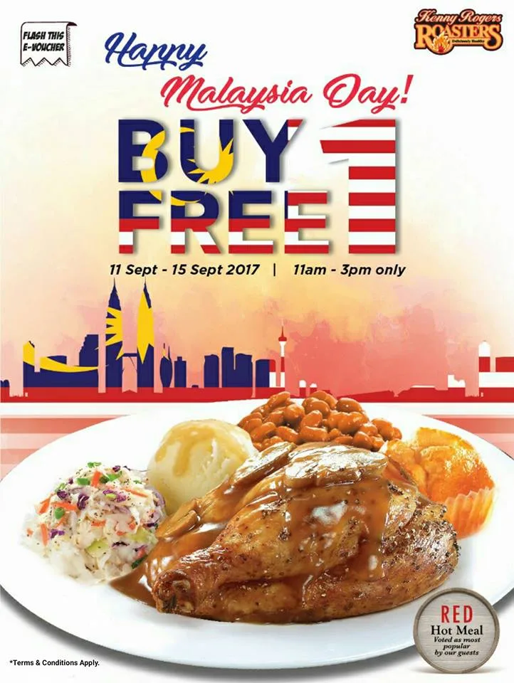 Dine in at Kenny Rogers Roasters Malaysia this week and enjoy their Buy 1 Free 1 promotion deal. The promo has already started and will carry on until 15th September (Friday). Do note that the red hot meal promo is only valid from 11am till 3pm and for dine-in only. So that means, it won’t be available for takeaway, delivery, or catering. In addition, purchases of discounted items are not entitled for any KRR Card Bonus.