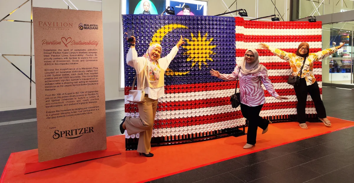 Pavilion KL’s ‘Pavilion Loves Sustainability’ campaign joins forces with Spritzer to celebrate Merdeka’s 66th year. An art installation featuring 2,000 upcycled Spritzer bottles graces Pavilion KL, reflecting their commitment to sustainability. Join in at Spritzer’s pop-up to pledge for a greener Malaysia by bringing your own recycled bottles.