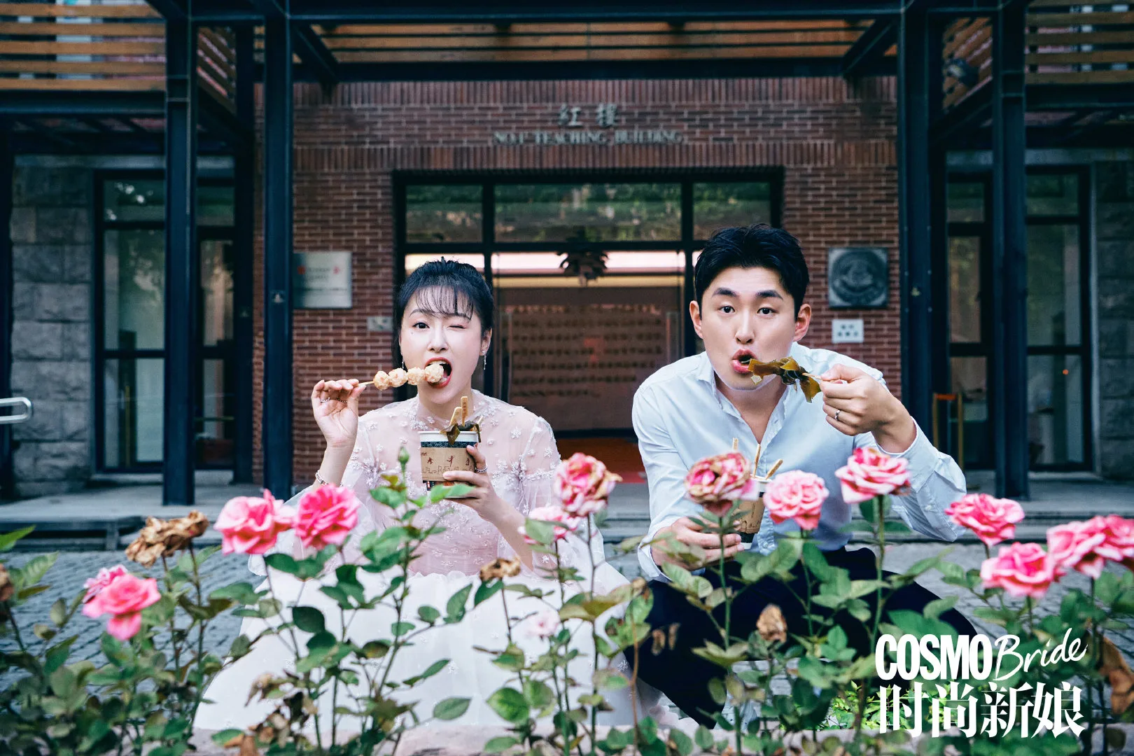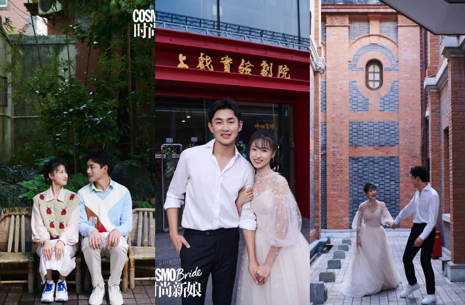The couple even returned to Shanghai Theatre Academy (上海戏剧学院) for their wedding photoshoot, which was published in the latest Cosmobride issue, titled “Love You Over My LifeTime”.