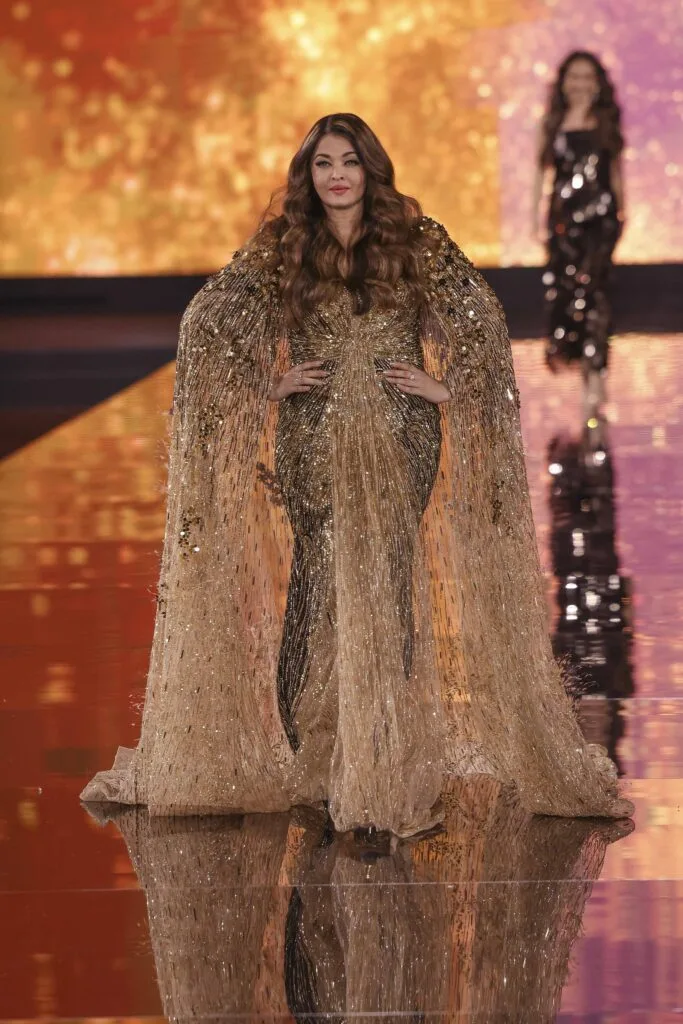 During Paris Fashion Week, Bollywood diva Aishwarya Rai Bachchan stole the spotlight when she walked the runway for L’Oréal Paris. The actress showed off her new blonde highlights while strutting down the runway in a golden cape gown.