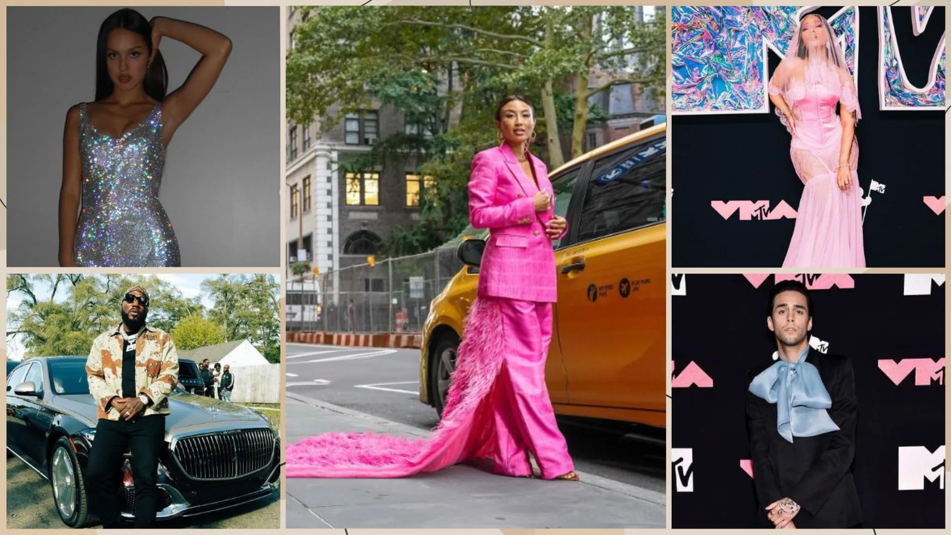 Stephen Sanchez’s stunning, enormous, baby-blue bow provided a splash of colour to his all-black outfit. Seppe Tirabassi, a fashion stylist, helped the “Until I Found You” singer create his look for the VMAs. Sanchez carried a bamboo-handled Gucci tote and sported a vintage Balenciaga suit.