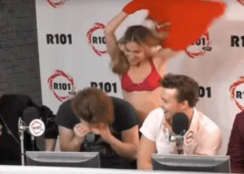 A radio host has been accused of sexual harassment after stripping in front of pop rock band 5 Seconds of...