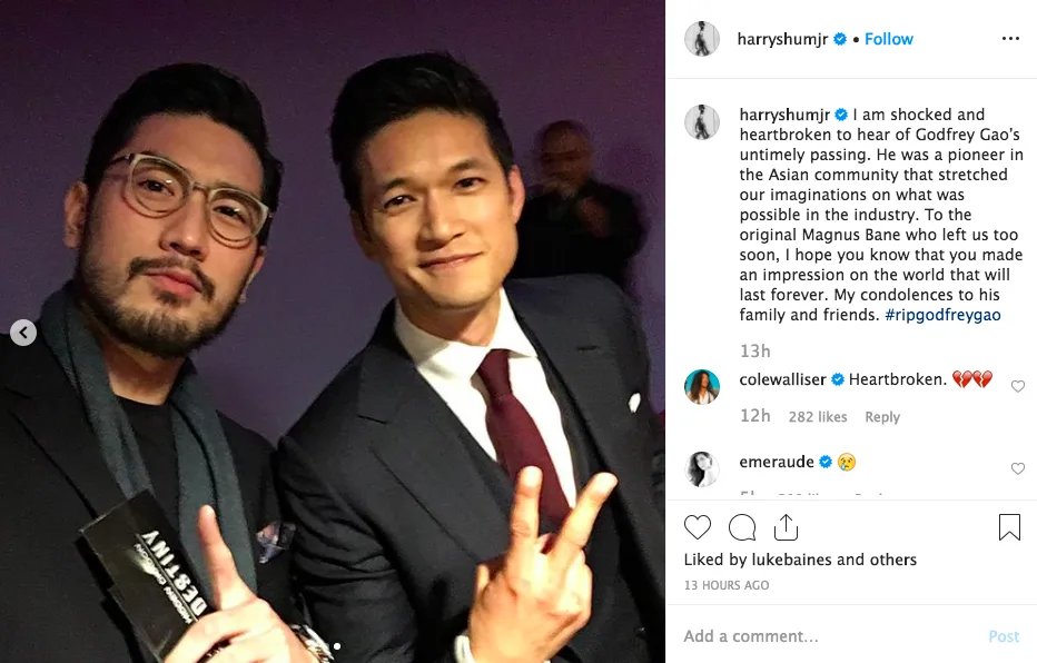“I am shocked & heartbroken to hear of Godfrey Gao’s untimely passing. He was a pioneer in the Asian community that stretched our imaginations on what was possible in the industry. To the original Magnus who left us way too soon, you left an impression on us that’ll last forever,” wrote Harry Shum Jr.