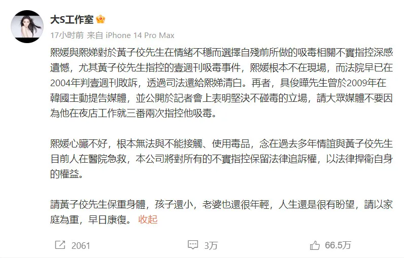 Barbie has a bad heart and can’t touch or use drugs at all. (While remembering) the past years of friendship with Mr. Mickey Huang, who is currently in the hospital for emergency treatment, the company will reserve the right of legal prosecution for all false allegations and defend its own rights and interests by law.