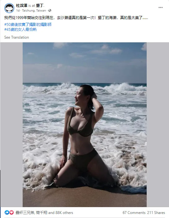 The actor later shared the photo on his Facebook, garnering over 88,000 likes from friends and fans. “This is the first time we’ve gone to the beach since we started dating in 1999,” Chapman shared. “The beaches of Kenting are really beautiful…” He also cheekily tagged, “(A) 45-year-old woman is most afraid of heat” which was apparently a teasing jab at his wife.