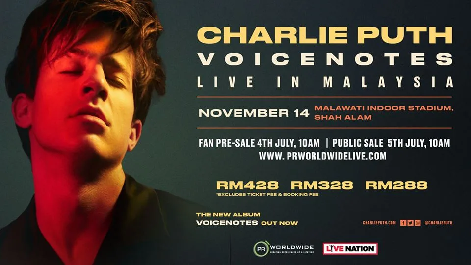 Brought to you by PR Worldwide and Live Nation, the details to Charlie Puth’s “Voicenotes Asia Tour” Live in Malaysia are as follows: