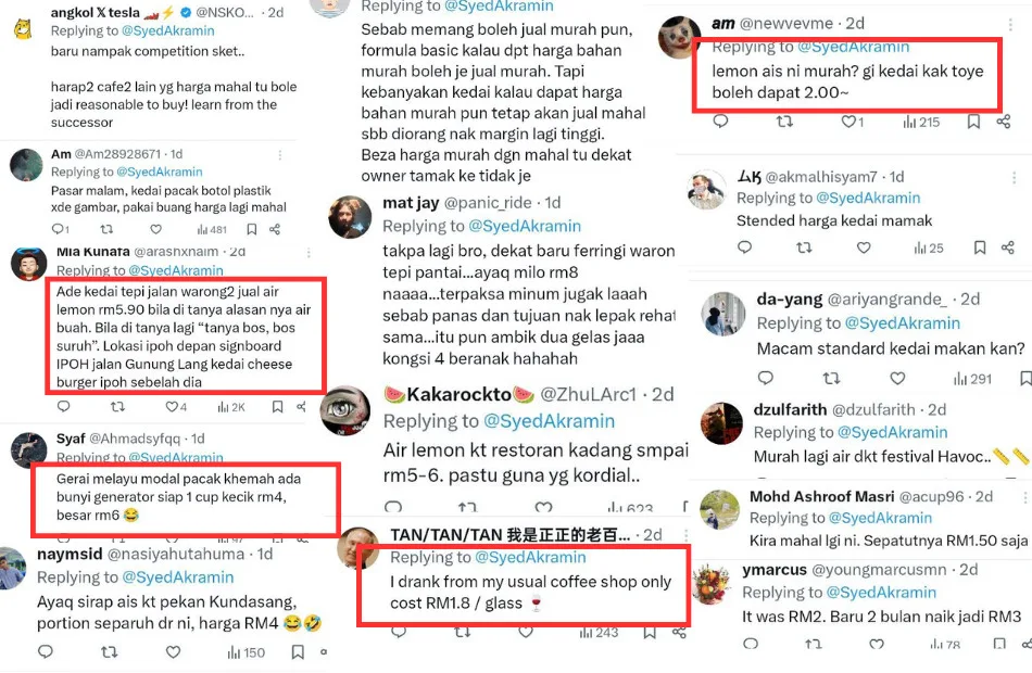 Several netizens praised the brand, noting that its prices are lower compared to local stalls, which charge higher prices for similar quality. Despite the compliments, one user remarked, “I drank at my usual coffee shop, and it only cost RM1.80 per glass.” Another added, “Cheap? I went to a restaurant where the ice lemonade was only RM2.”