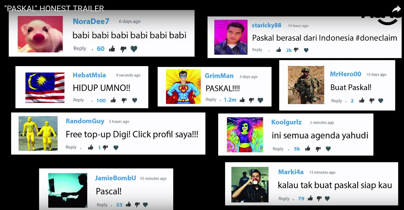 The video starts off exactly like Screen Junkies’ “Honest Trailers” with people’s comments popping up on screen asking them to make the honest trailer for the movie “Paskal”. However, it seems that some unrelated comments also appeared on the screen.