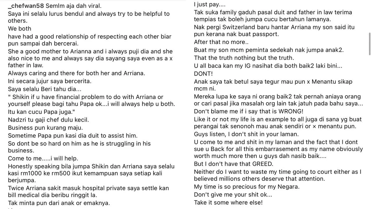 In another rant post, he mentioned how he could sue Shikin for defamation if he was greedy, as his name is worth much more than Shikin. Plus, it’ll be a waste of time to go to court. The public figure added, “Listen, I don’t shit in your yard, but you come to me and shit in my yard. Don’t give me your shit, okay? Take it somewhere else.”