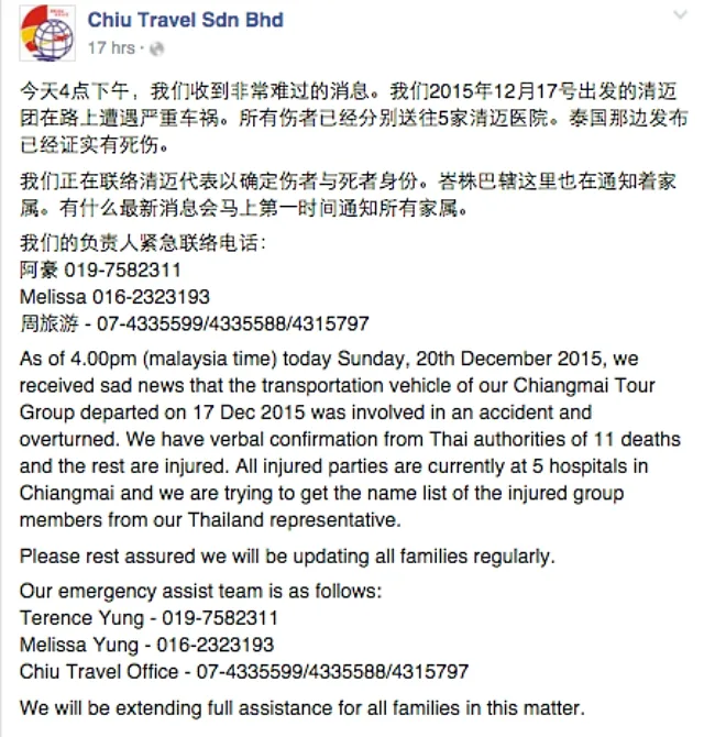 According to Terrence, his agency was alerted of the accident by the Thai authorities at about 4pm yesterday.