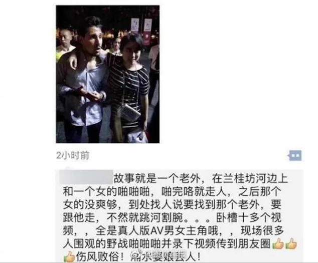 A foreigner was recently caught having sex with a young Chinese woman in the streets of Chengdu, China.