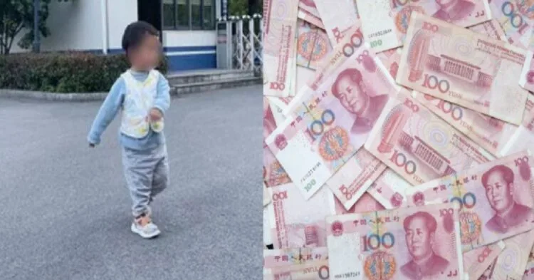 The man, surnamed Xie, sold his son Jiejie to a childless couple in Changshu, Jiangsu for 158,000 yuan (about RM100,600). Then man then went travelling with his new wife from Jiangsu to the Guizhou province. Xie took videos and photos of his newly gained money to show off to his friends. According to local Chinese media, Xie supposedly sold his child to relieve the burden of childcare.