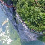 “Coiling Dragon Cliff” is the 3rd glass skywalk in the Southern province, and it overlooks Tongtian Avenue, “a mountain road with 99 turns that snakes up Tianmen Mountain”. It measures 1.6 metres wide and is only around 6 centimetres thick, according to Chinese reports.