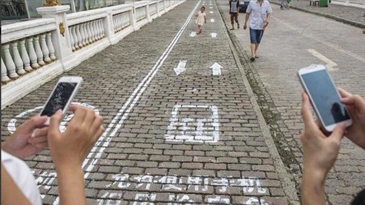 The city of Chongqing recently unveiled an idea that will make you wonder, “Why didn’t I think of that?!” – a smartphone lane for pedestrians. The lane is a walkway in a Chinese theme park called “Yangren Jie”, which directly translates into “Foreigner Street”. Stretching 100 feet, the walkway bears a large signage in both Chinese and English that warns pedestrians to walk in the designated lane.