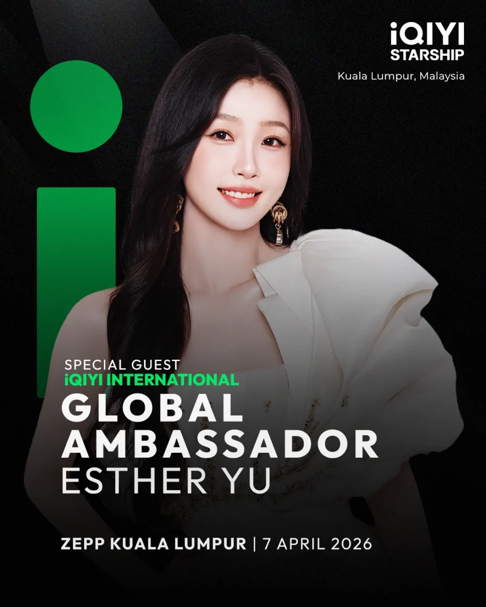 iQIYI International recently announced the launch of the iQIYI Starship 2026 tour, with Malaysia as the first stop. As iQIYI International Global Ambassador, Esther will make a special appearance in Kuala Lumpur to meet audiences in Malaysia for the first time. The fan meeting will take place at Zepp Kuala Lumpur on 7th April 2026 (Tuesday).