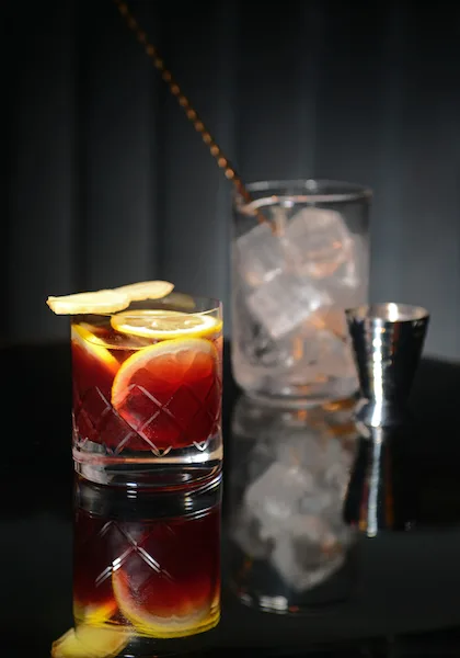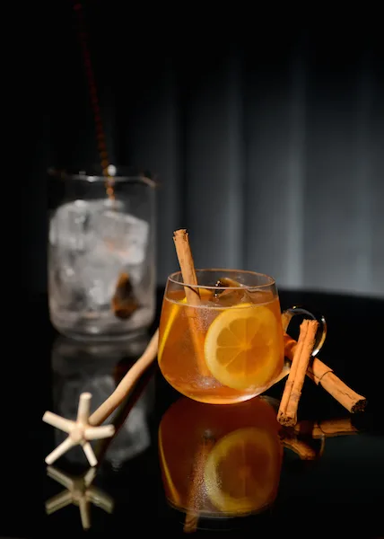 Brew tea overnight in cold water. Add lemon, sugar and tea to a punch bowl, stir to dissolve sugar. Add the Grant’s 8YO and Sailor Jerry, refrigerate to keep cold. When ready to serve add large block of ice to prevent dilution and top with champagne. Serve with citrus zests and star anise.