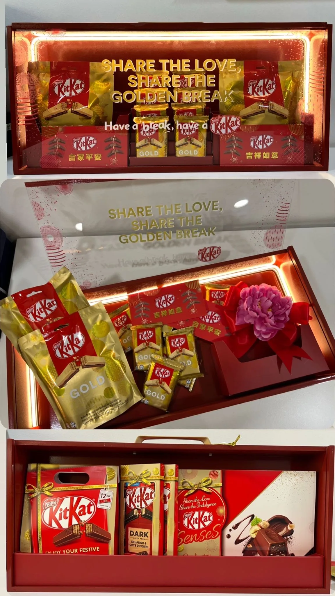 The limited-edition celebrative range of gift-ready packs include KITKAT Gold 4 Fingers singles, KITKAT Gold Sharebag, KITKAT 12s Festive Sharebag Sleeve, KITKAT Bar Festive Sleeve, KITKAT Senses, KITKAT Cele-break Pack and the KITKAT Prosperity CNY storage box.