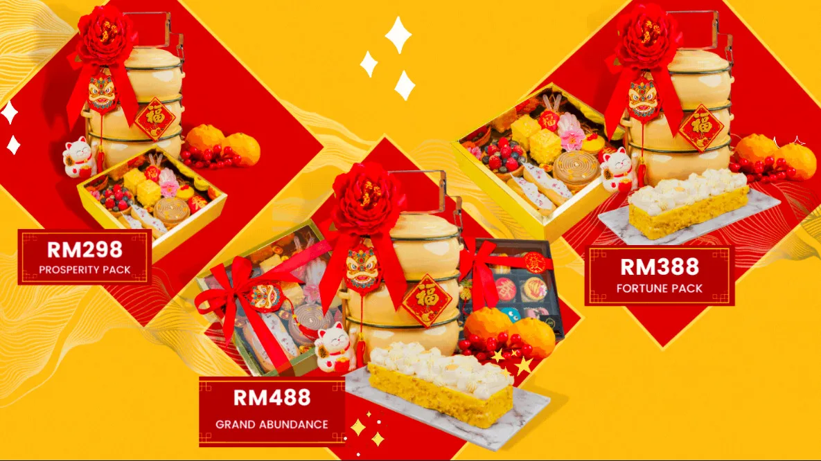 If you’re looking for a more savoury basket to gift relatives, Pullman KLCC’s red basket might just be what you’re looking for. The basket is packed in their elegant gift box and also includes greeting cards and a pack of beautifully designed red packets and comes with a variety of cookies, cupcakes and savoury snacks! You can also top up a bottle of wine or champagne to really spice up your gift basket.