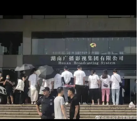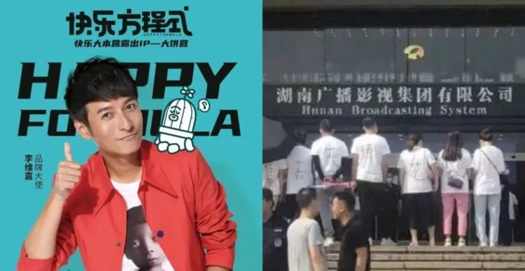 Yesterday (8th September), photographs and videos of people standing outside the Hunan TV station went viral. The group all wore white T-shirts with the phrase “Li Weijia (is) a wicked artist!” on them. Videos showed the group shouting things like, “Where is your conscience?” and “Pay back my hard-earned money!”