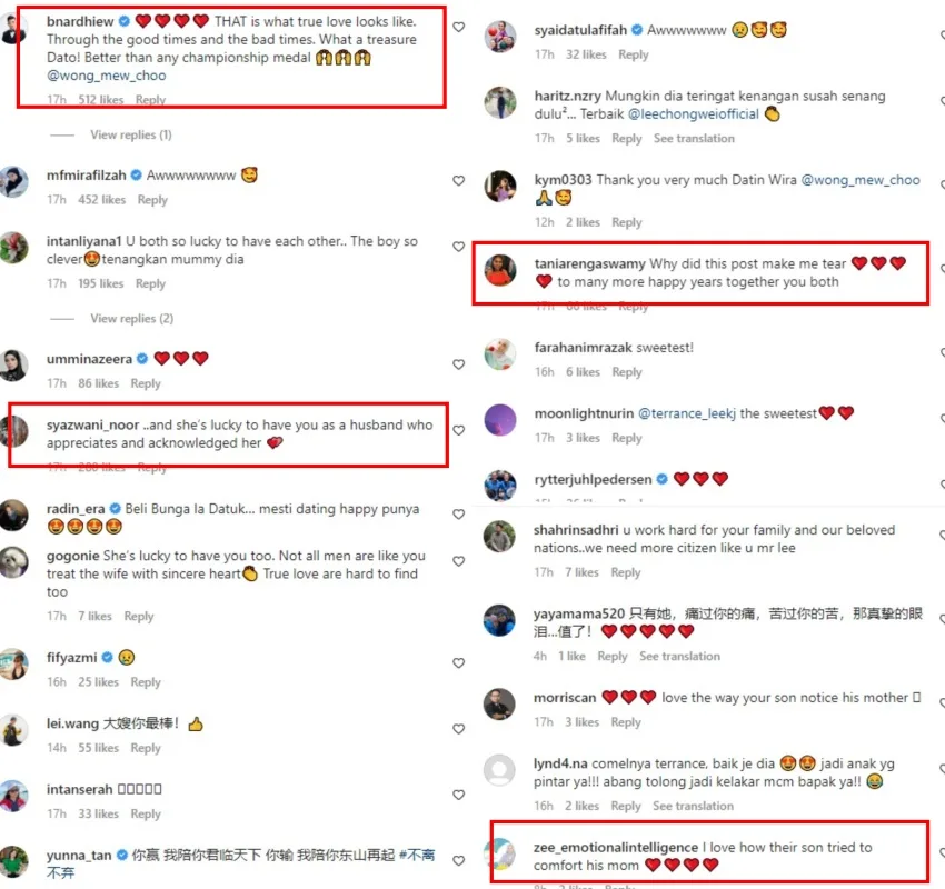 Fellow athletes, local celebrities, and fans were possibly just as emotional after seeing the video as many of them commented that the couple was very lucky to have each other through thick and thin. Some said that Wong Mew Choo is also blessed to have such a loving husband who acknowledges and supports her. There were also those who applaud the son for comforting his emotional mother.