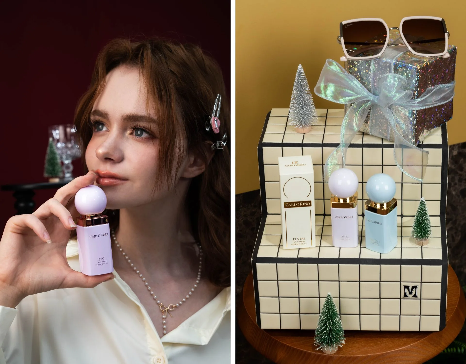 This Christmas, indulge your senses with Carlo Rino’s “Perfume Collection,” designed to evoke the spirit of the season. Each fragrance is crafted to reflect the magic and joy of the holidays. With scents like “The One,” a fresh, lively vibe ideal for casual daytime occasions; “25°C,” a sweet floral scent perfect for romantic parties; and “It’s Me,” an elegant woody and floral blend that exudes sophistication for evening events, you’ll find the perfect fragrance to match your festive spirit. Each perfume invites you to embrace the season, ensuring you feel as fabulous as you look while adding a touch of elegance to your holiday celebrations.